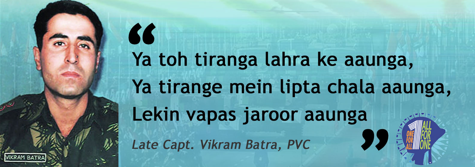 Either I will come back after hoisting the Tricolor, or I will come back wrapped in it, but I will be back for sure. – Capt. Vikram Batra, PVC (posthumous)